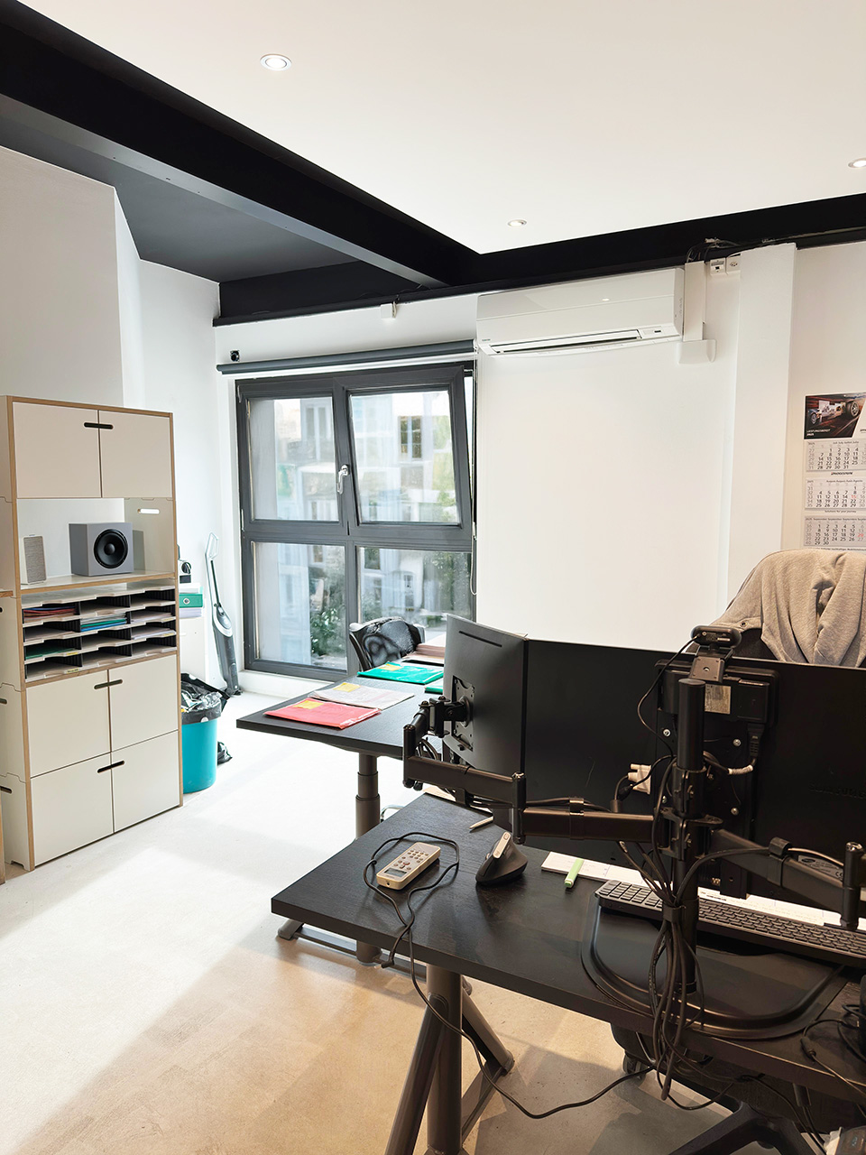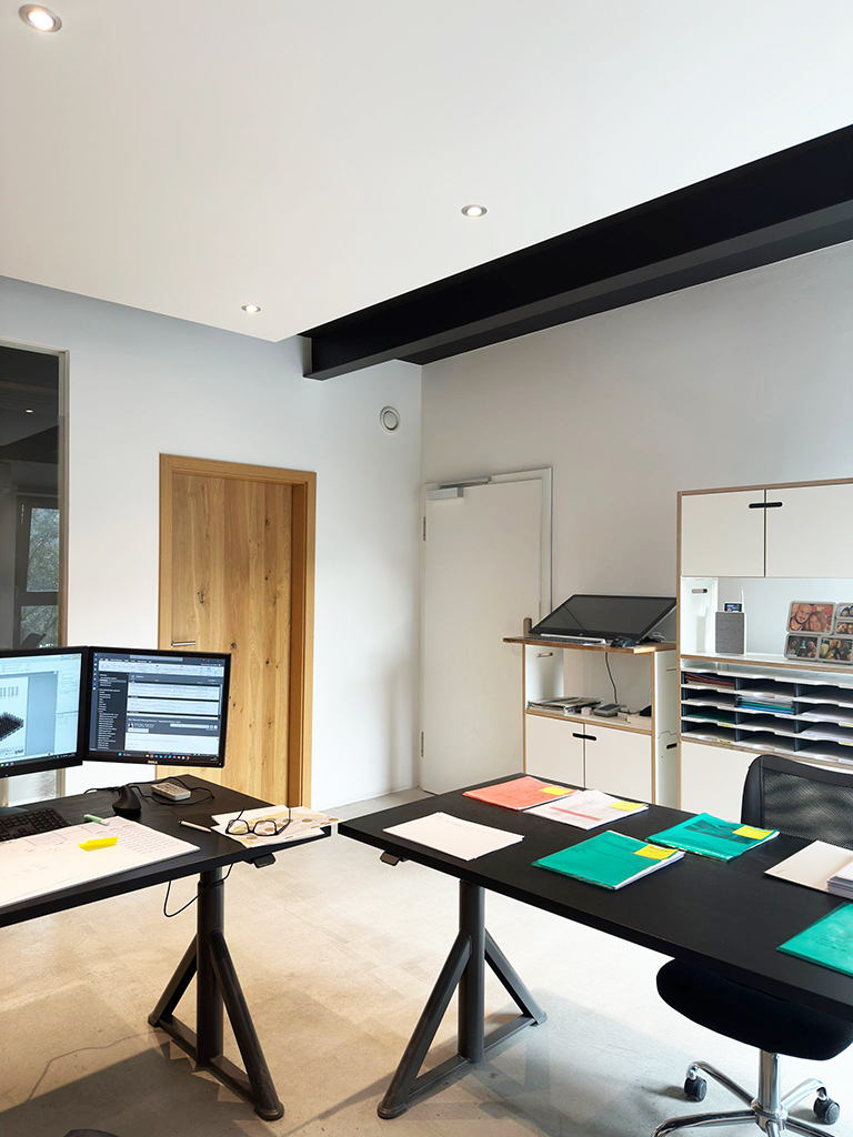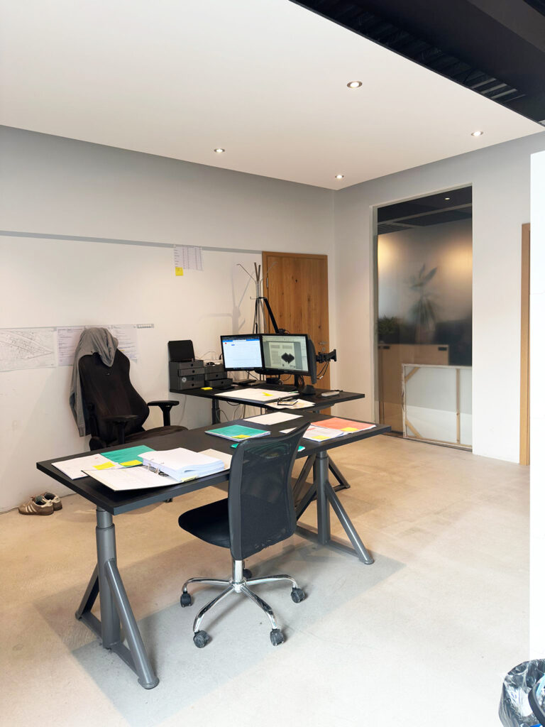 Modernes Büro mit zwei Arbeitsplätzen und praktischer Raumaufteilung